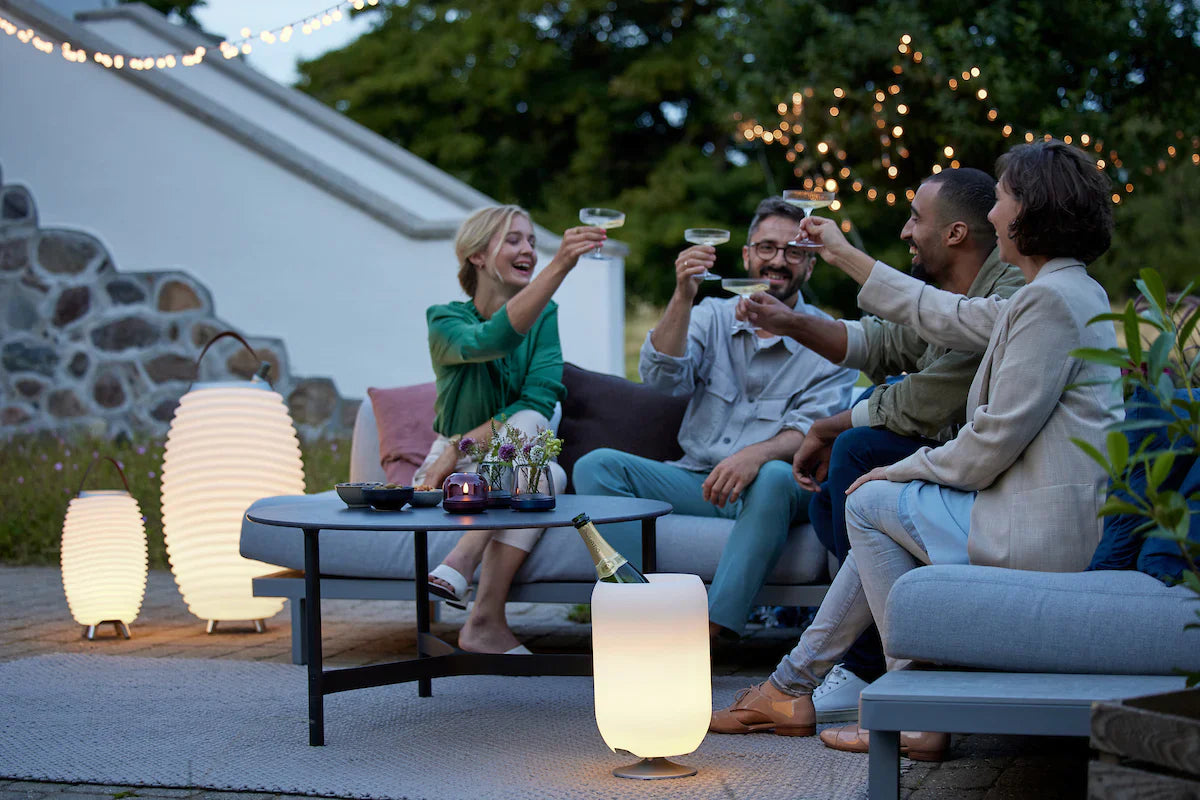 Descubre todos nuestros parlantes con lámpara y enfriador de vinos, todo en 1: Synergy y Atmos. ¡100% portátiles con batería recargable incorporada! Llévalos a donde quieras o disfruta de una fiesta improvisada en casa. Puedes guardar 1 o 2 botellas (de vino), dependiendo del tamaño y modelo del producto. TIP: Usa los cubos de hielo reutilizables Kooduu y tus bebidas se mantendrán frías por horas.